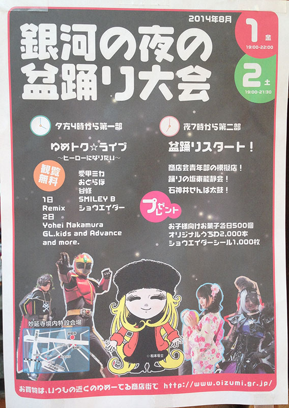 8月1日、2日、練馬区大泉学園ゆめーてる商店街のイベント「銀河の夜の盆踊り大会」で