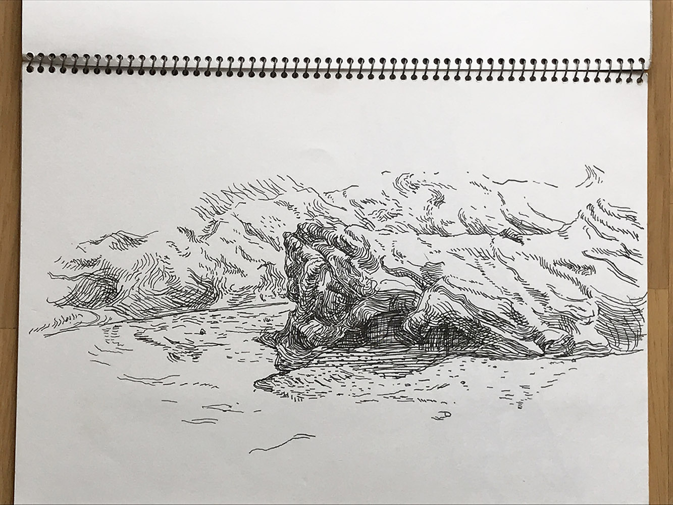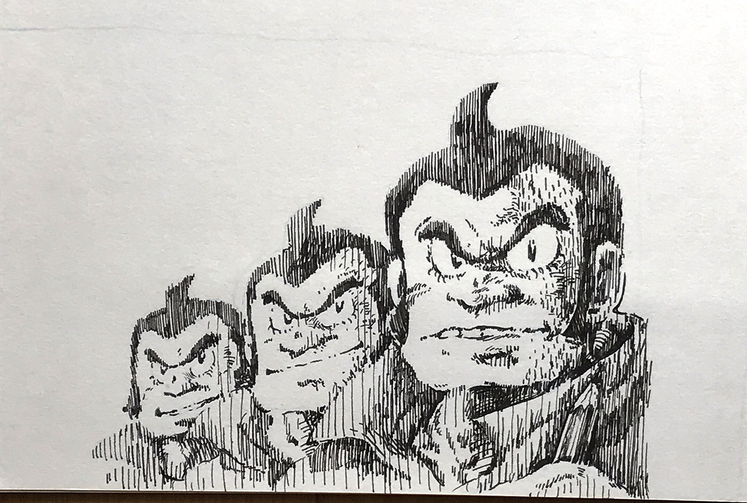 本当はキャンバス2枚がノルマだったが、描くのが嫌だったので(うまく描けなかったし)、スケッチブックとミリペンを持ってあちこち歩き回った。それ以外の時間は河西君がどこかで買ってきたベーゴマの回し方を教わり毎日遊んでいた。 海岸のゴツゴツした岩。 すごく小さい港 水辺で柔らかそうに削れた岩 瓦礫 竹でできた小屋 海岸で乾いていた小さい鮫の死骸 途中で描くのをやめたブイとか何か 港にあった何か 途中で描くのをやめた小屋とか何か スケッチブック巻末の余ったところに描いてあったプロテス三兄弟 コロコロコミック連載「とどろけ一番」に登場した テストにプロレス技を応用する恐ろしい三つ子の兄弟。 なぜこれを描いたのか今となっては全くわからない。 このスケッチブックは確か89年頃のもの。 ……30年前!?えらく昔のことだなぁ。ついこの間のことだと思っていたのに。 |