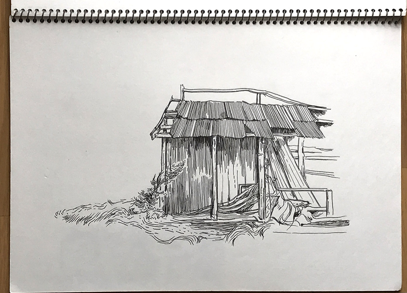 学校の野外風景実習で描いた。場所は千葉県の、房総半島の南端あたり。