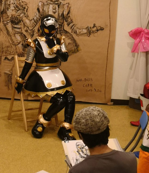 ロボットが接客するというハイテクノロジーなメイド喫茶で絵を描いてきた。
