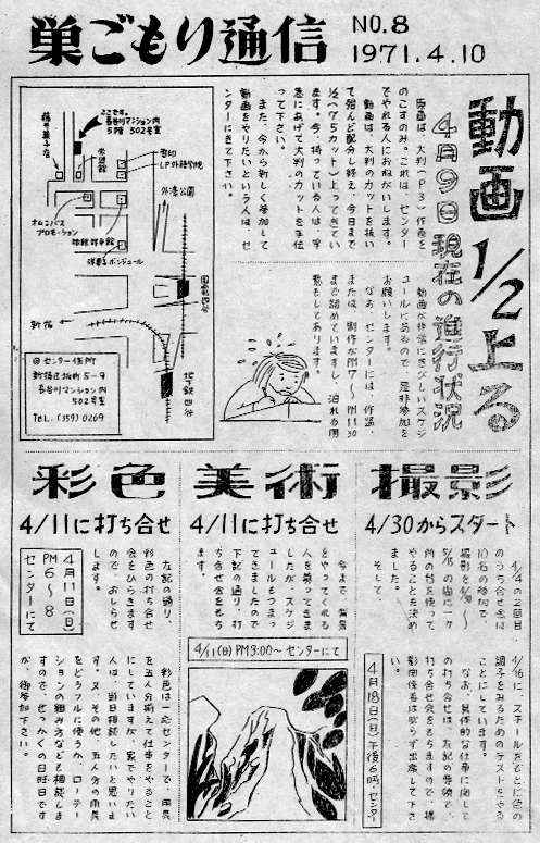 今回は防災・PR映画中心です。 観たいけれど観た事の無かったものがほとんどですので、どうなるか…… でも一度は観なければならないものばかりだと思いますので 御用とお急ぎで無い方は是非ご来場下さい。 ーーーーーーーーーーーーーーーーーーーーーーーーーーーーーーーーーーーーー ●「電気って魔法みたい」I'm no fool with electricity 1973年 8分 ディズニープロ ディズニー漫画のもの知りこおろぎジィミニーが登場し、安全な電気の扱いかたを面白くわかりやすく説明します 。 ●「つるのすごもり」 1971年 17分 生まれたばかりのヒナを守るために、タカに倒されてしまった夫婦ツル。 それを見た仲間のツルは、協力してタカを倒す。残されたヒナは、仲間のツルにより、元気に成長していく。 日本映画放送産業労働組合が、業界内の有志に呼びかけて、東映動画、東京ムービー、TCJ(現エイケン)、 虫プロ、竜の子プロ、Aプロなどで働く労働者達が、それぞれ勤務の余暇を割き3年がかりで完成させた自主製作アニメ。 会社に内緒で参加した人が多かったらしく、スタッフロールには多くのペンネームが並んでいます。 (演出・作画監督の斎藤和男は芝山努氏のペンネーム)。 ●「火事と子馬」 1978年 22分 吉とハルはいつも仲良し。ある日、吉の家に仔馬が生まれました。 喜びもつかの間、仔馬は生まれながらも立ち上がりそうにありません。 吉とハルは一生懸命看病するがなかなか立てない。ある日、ハルの家が火事になり・・・。 キャラクターデザイン、作画は安彦良和氏。 ●「てんまのとらやん」 1971年 17分 大阪、天満の鰻屋さんの丁稚どんとらやんは、鰻をつかまえようとして逃がしてしまい、追いかけて大根畑へ。 特大の大根を抜いた拍子に空へ飛び出し、宇宙から雷さまの雲の上へ、海の底へと大冒険。 ●「おかしなおかしな星の国」 1969年 20分 大宇宙を宇宙船が行く。その名は「日本号」、乗っているのは次郎をリーダーとする修学旅行の生徒たち。 ムダ使いのゼロス星、その先は破滅しかない。「日本号」は間一髪ゼロス星から脱出する。 脚本・辻真先 演出・芹川有吾 音楽・冨田勲 作画・木村圭市郎 声の出演・熊倉一雄、曽我町子 ●「幸せは安全と共に」 1976年 20分 一般家庭でのガスの正しい使い方を、アニメーションで説明する。 出崎統、杉野昭夫ほか、マッドハウス制作 ●「虹に向かって」 1977年 20分 谷川をへだてて向いあった村に住むオリツと源治は、成長するにしたがって、お互いに好意をもつようになる。 しかし、深い谷川にはばまれて往来できない。橋をかければ…。 監督 岡本忠成 音楽、歌 及川恒平 語り 岸田今日子 ーーーーーーーーーーーーーーーーーーーーーーーーーーーーーーーーーーーーー 会場はいつもの、大崎第一区民集会所、第二集会室 (山手線 五反田駅、目黒駅より徒歩10分、 東急目黒線 不動前より徒歩5分) 13時頃~16時頃まで。 入場無料ですので、よろしくおねがいします。 PR