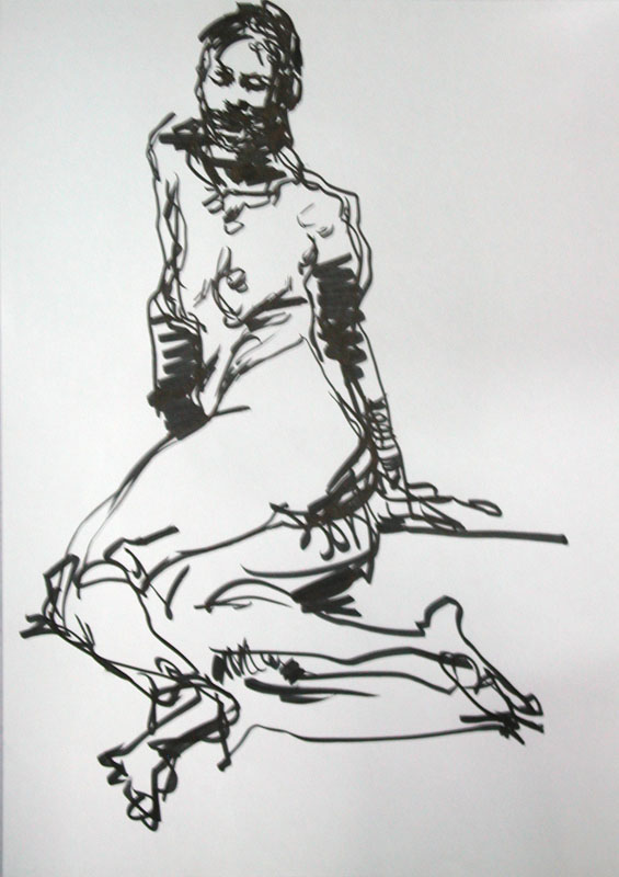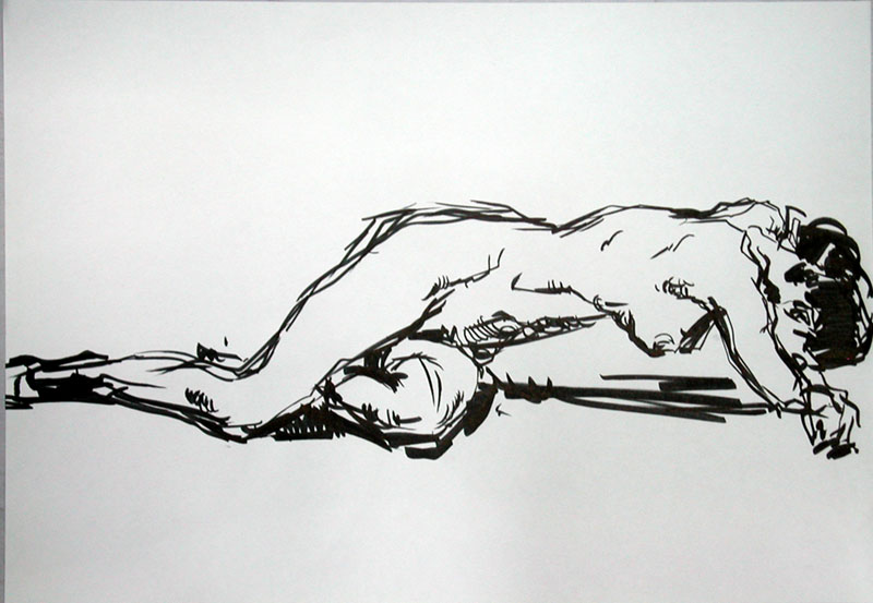 開場前の集合写真。スタッフや出演者でこの人数とは、どれだけ大掛かりなイベントなのだろうと驚いた。 被り物で描いている手前の人が、今回誘ってくれた漫画家の赤津さんだ。上手いのが見られて悔し嬉しい。 暗いので僕は肩にライトを張り付けて描いている。これのおかげで手元がよく見え、なんだかメカ内蔵のサイボーグになったような気分で嬉しかった。 エヴァ対ガンダムで1枚いきましょうという提案があったので、二人で描いた。 思ったように描けなかったので、ここで一旦心が折れた。 でも「これが欲しい」と熱心な方が貰って行ってくれたので立ち直った。 持って行ってくれるのはありがたいが、こんなでかいの邪魔じゃないかなぁと思う。 暗いのでライトで照らして描く。 ライトは肩にテープで装着。 線画の段階ではもう少し松本風だったのですが、色を塗ったら印象が変わりました。 イベント自体は夕方に始まり、終電前に終わったので、体力的にありがたかった。