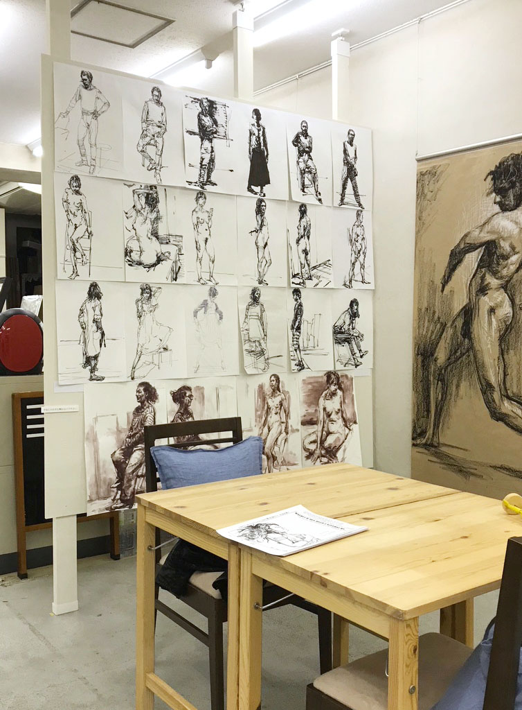 まずはポーズ写真を見ながら練習。 今回は写真に十字の補助線を入れたので少し描きやすかったような気がします。 そのあとモデルクロッキー。(正味40分) どちらも右側のは生徒さん作。 いつもながら形が安定していてとてもよく描けていますが、 もっと時間を多めに取るとさらに良くなる事でしょう。 次回からの授業内容の課題にいたします。 ところで教室の宣伝なのですが https://oomori-art-position.jimdo.com 人がとても少ないので描きやすいです。 前回、前々回のヌードモデルの日は僕が1人で描いているという贅沢さでした。 今のままでは僕は楽ですが、教室の方がとても困っているはずなので もしよろしければ興味を持たれた方、よろしくお願いします。 毎週木曜日、18:40~21:10です。(第五木曜はお休み) https://oomori-art-position.jimdo.com/大森アートスクール/人物デッサン/ 1週 ヌードデッサン(奇数月の1週目はクロッキーです) 第2週 座学など勉強+クロッキー 第3週 ヌードデッサン 第4週 座学など勉強+クロッキー 第2、4週は、前半90分ほど顔や全身の描き方などの勉強、後半60分は着衣クロッキーです。 (今回のようにでかいサイズのを描いたり、色々と課題を変えます) 料金は 入会制の場合 入会金7000円、月謝15000円 チケット購入の場合 入会金なし、6回分(使用期限3ヶ月)×1回分4000円です。 ー ブログ特別サービス ー 受付に「工藤のブログを見た」と言っていただけたら、初回のみ半額に割引 ……本当に人がいないので、生徒募集の記事は定期的に載せる事にしようと思います。 |
