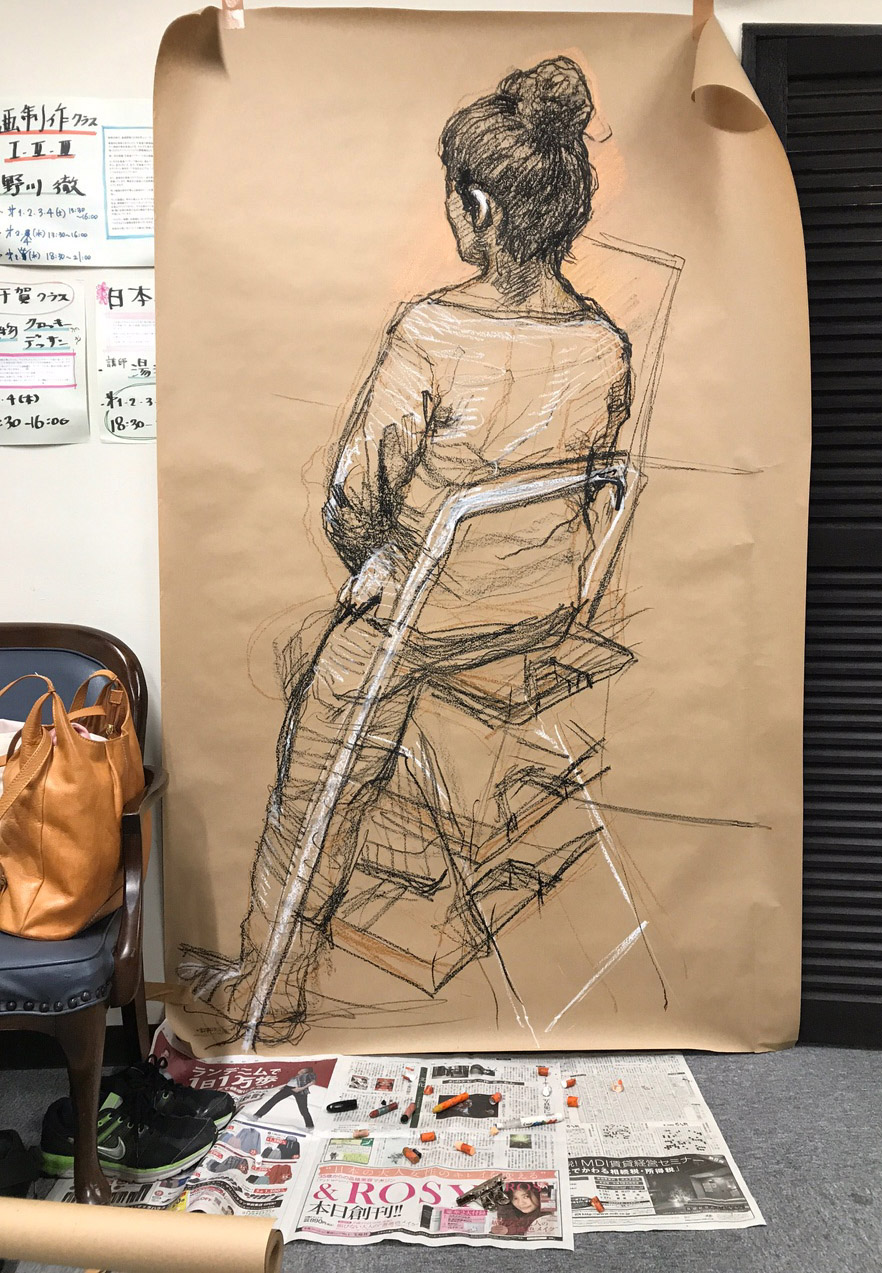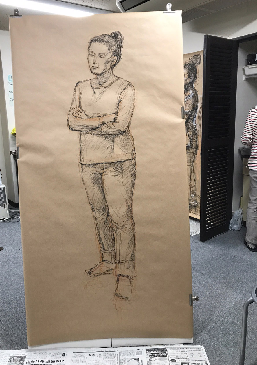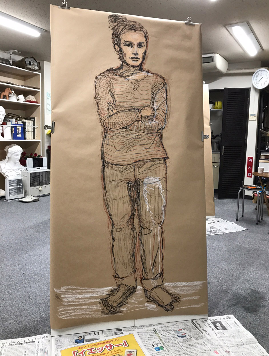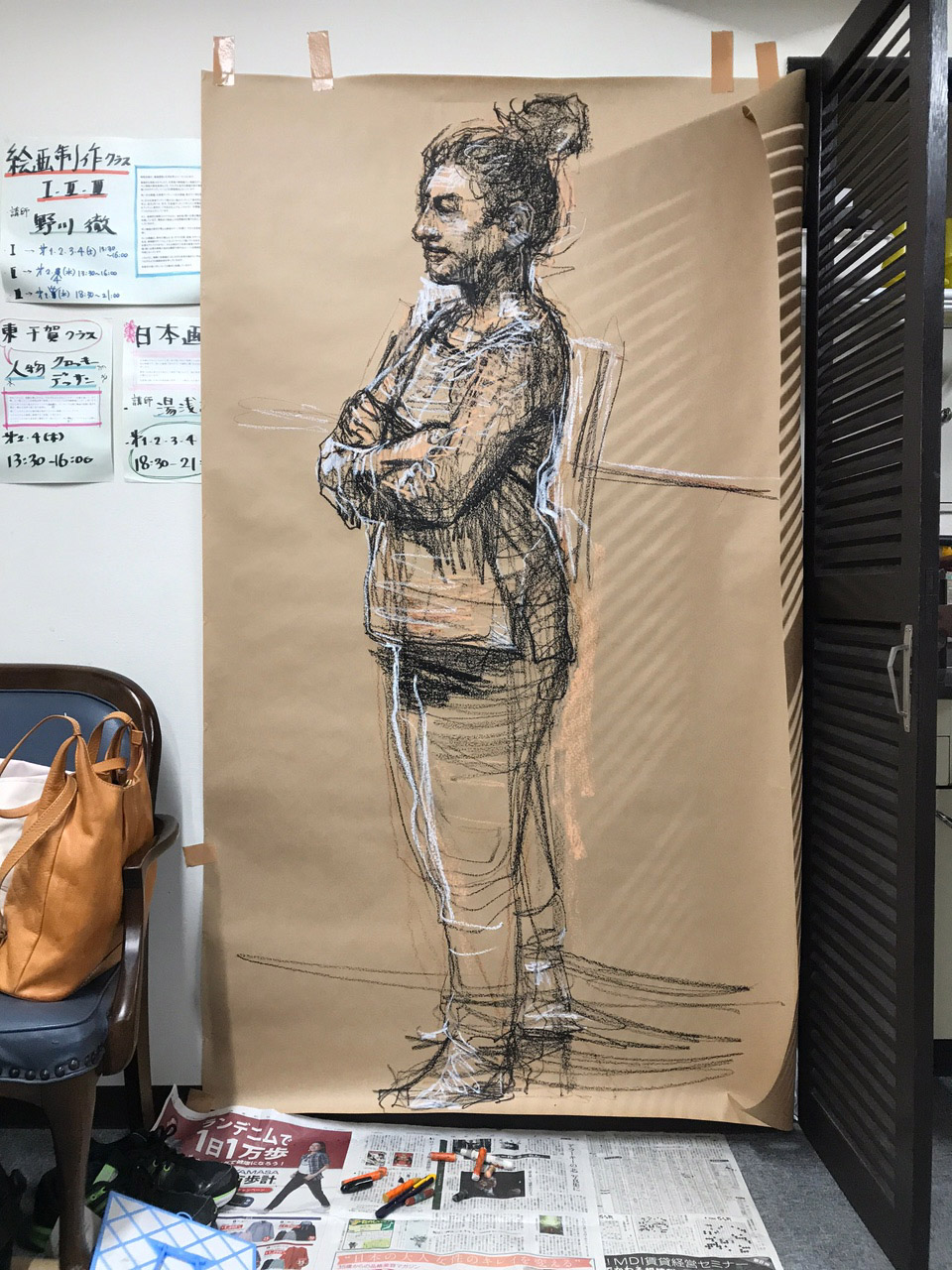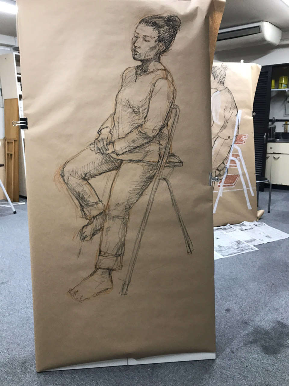 大田区大森の「大森アートポジション」で人物デッサンクラスを担当しています。 毎週木曜日、18:40~21:10です。(第五木曜はお休み) https://oomori-art-position.jimdo.com/大森アートスクール/人物デッサン/ モデルさんが来る前に会場のセッティング。写真は腕慣らしのためにラクガキをしているところです。 第1週 ヌードデッサン(奇数月の1週目はクロッキーです) 第2週 座学など勉強+クロッキー 第3週 ヌードデッサン 第4週 座学など勉強+クロッキー 第2、4週は、前半90分ほど顔や全身の描き方などの勉強、後半60分は着衣クロッキーです。 この日は顔の描き方特講でした。 課題シートに沿って構造を学び、描き方を身につけます。 終了後は着衣クロッキー、女性モデルの方に来ていただきました。 料金は 入会制の場合 入会金7000円、月謝15000円 チケット購入の場合 入会金なし、6回分(使用期限3ヶ月)×1回分4000円です。 ー ブログ特別サービス ー 受付に「工藤のブログを見た」と言っていただけたら、初回のみ半額に割引 PR 本郷三丁目の「東京アートアカデミー」で月に1回、毎月第三火曜日に絵画教室やってます。 このビルの5階です 基本的に人物デッサン、クロッキー講座です。 毎回前半は、人体の書き方を学んだり、透視図法やったり 後半はモデルクロッキーをします。 前回は等身大クロッキーやりました。 ここは校長が元々腕のいいモデルさんなので、人物を描く事にまったく不自由しないのでとてもありがたいです。 通常の講座費用は、回数券3枚(9000円)ですが 生徒さんがとても少ないので、ゆったりと描けます。よろしくお願いします。 次回は7月18日(火)18:30~21:00 東京都文京区本郷3-17-7 丸尾駐車場ビル 5階