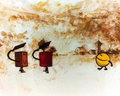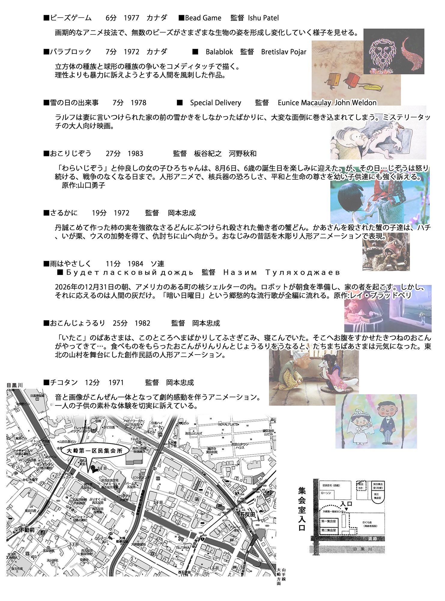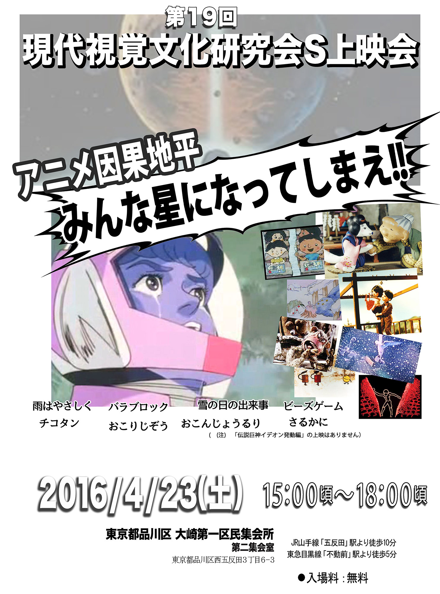 オープニングの絵を10枚程描かせていただきました。 この映画はサム・ライミ監督「スパイダーマン2」のパク……ではなく、リスペクト&オマージュで出来ている。映画冒頭で前作の内容を紹介するシーンにイラストを使用するところが特に似ているところだ 「スパイダーマン2」では巨匠アレックス・ロス(注1)がイラストを担当していた。 ここを「変態仮面」2作目では僕が担当する事になった。 あぁ、とうとう僕も巨匠と肩を並べる程の仕事をする時が来たのだ。 (アレックス・ロス……アメコミ登場キャラクター等を写実に描く凄く上手い人) 何年も前の事だが「工藤さんは日本のアレックス・ロスだなぁ」と言ってくれたのはたしか作家の紙谷龍生さんだったと記憶している。 「やだなぁ、アレックスの方を『アメリカの工藤みたいな奴』と言って下さいよ」とその時えらそうな返事をしたような。 それにしても何という重大な仕事を請け負ってしまったのだろう。映画の出来は自分のこの肩にかかっている。そう確信していた。 これは監督や主演俳優と並ぶほどの重要な役割だ。 重圧に負けたわけではないが、途中で目の調子が悪くなり、眼科医の世話になっていた。 右目が霞み物が二重に物が見える中、もしかするとこれが最後の仕事になるかもしれないと覚悟しながら一生懸命に描き込むのは、主人公の股間の膨らみだったり、女性用下着の模様だったり。 この状況が、自分で面白くて仕方がなかった。 とにかく大変重要な仕事をしてしまった。 これは公開初日の舞台挨拶に呼ばれてしまうに違いない。汚い格好では行けないなぁ。気の利いた挨拶をしなければなどと考えていたのだが 予告編にも宣伝用チラシにも僕の名前が出る事は無く、 映画のエンディングに小さく見える程度の扱いだ。うむ、薄々わかっていた事だ。 とりあえず面白い仕事ができたのでとても満足している。 変態仮面の次回作part3(たぶん出来る)では僕の出番は無いだろう。 サム・ライミ版スパイダーマンのオープニングは、「1」がコミックブック、「2」でイラスト、「3」は実写なので、この足跡を辿る本作は、当然実写で行くはず。 うむ、とても残念だ。 画像は本編では使用されなかった、初変身シーンの下絵です。 (映画では目玉部分が違う別バージョンが使用されています) 下ネタが平気な人ならお勧めの一作です。面白かったですよ。 5月25日追記 変態仮面OPの評判はどんなだろうかと思い、ネットで検索してみました。 「オープニングとスタッフロールが楽しかった」 「オープニングのマーベルっぽさでいきなり心を掴まれました。」 「オープニングから笑った」 「オープニングがからやっぱりモロパクリじゃねえか」 「今回もオープニングからアレっぽくてグッとくる」 「オープニングだけでも1,800円の価値がある」 等々、評判がたいへん良い様子。 もちろんこれは映像編集の構成があってこその評価なのですが。 こういう奇特な方がおられた。 「タイトルイラストに工藤稜となっててええっまじかー!!!ってなった (普段全然お仕事追っかけているわけではないのですがめさくさ尊敬している) 何か機会があったらきっちりチェックしよう…」 知り合いではないようです。ありがとうございます!!モニターの前で頭を下げてお礼申し上げます。 PR ・日時: 4/23(土)15:00(予定)〜18:00頃終了予定 ※いつもと上映開始時刻が異なります。 ・入場料: 無料 ・場所: 東京都品川区 大崎第一区民集会所 第二集会室 (東京都品川区西五反田3-6-3) JR山手線「五反田」駅下車、徒歩10分 東急目黒線「不動前」駅下車、徒歩5分 http://bit.ly/c5gwOE http://tmug.jp/oosakiFudo/ すべて16mmフィルムによる上映となります。 フィルムが赤く退色してたら申し訳ありません。 フィルムの状態によっては上映作品を変更することがあります。 ご了承お願いいたします。 ・上映作品: 『ビーズゲーム』 6分 1977 カナダ 原題:Bead Game 監督:イシュ・パテル 画期的なアニメ技法で、無数のビーズがさまざまな生物の姿を形成し変化していく様子を見せる。 『バラブロック』 7分 1972 カナダ 原題:Balablok 監督:ブジェスティラフ・ポヤル 立方体の種族と球形の種族の争いをコメディタッチで描く。 理性よりも暴力に訴えようとする人間を風刺した作品。 『雪の日の出来事』 7分 1978 原題:Special Delively 監督:ジョン・ウェルドン ラルフは妻に言いつけられた家の前の雪かきをしなかったばかりに、大変な面倒に巻き込まれてしまう。ミステリータッチの大人向け映画。 『おこりじぞう』 27分 1983 翼プロ 原作:山口勇子 監督:板谷紀之、 河野秋和 「わらいじぞう」と仲良しの女の子ひろちゃんは、8月6日、6歳の誕生日を楽しみに迎えた。が、その日…じぞうは怒り続ける、戦争のなくなる日まで。人形アニメで、核兵器の恐ろしさ、平和と生命の尊さを幼い子供達にも強く訴える。 『さるかに』 19分 1972 エコー社 監督:岡本忠成 丹誠こめて作った柿の実を強欲なさるどんにぶつけられ殺され