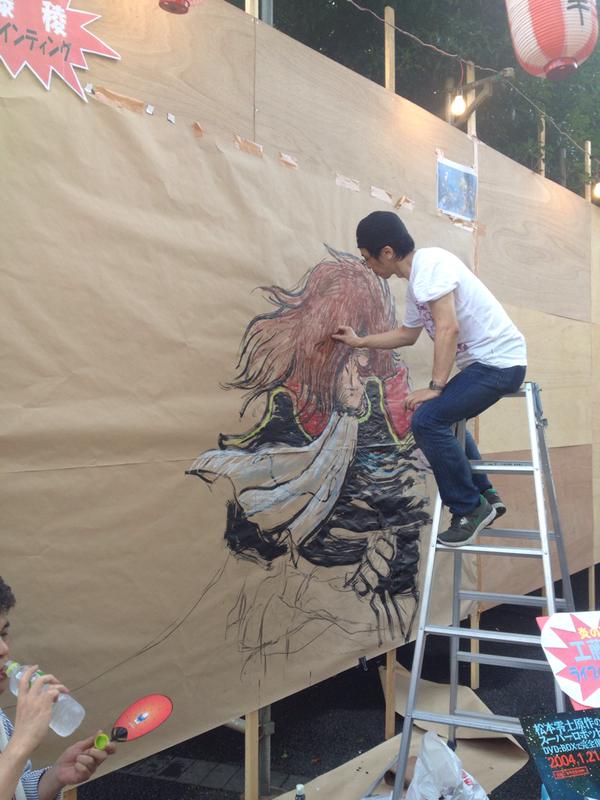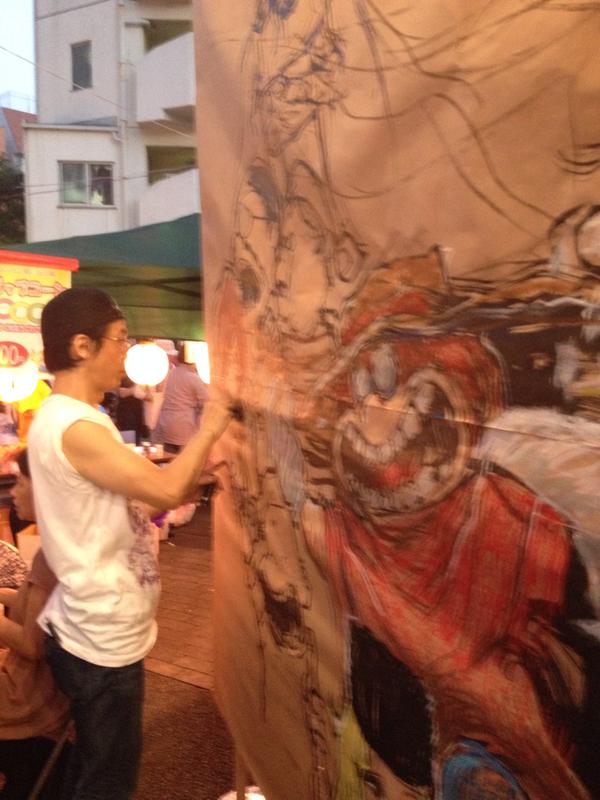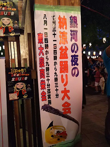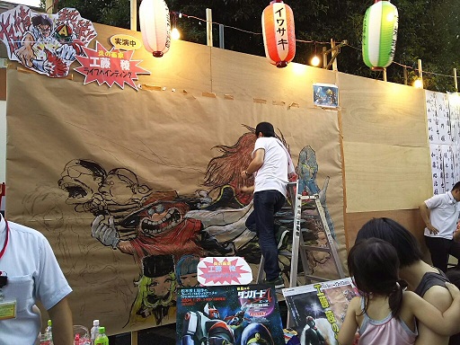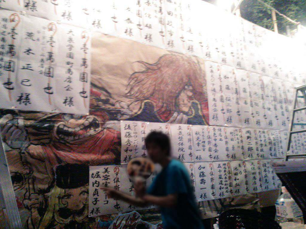 昨年と同じ場所、練馬区大泉学園、妙延寺 の盆踊り大会で松本画を描いてきました。