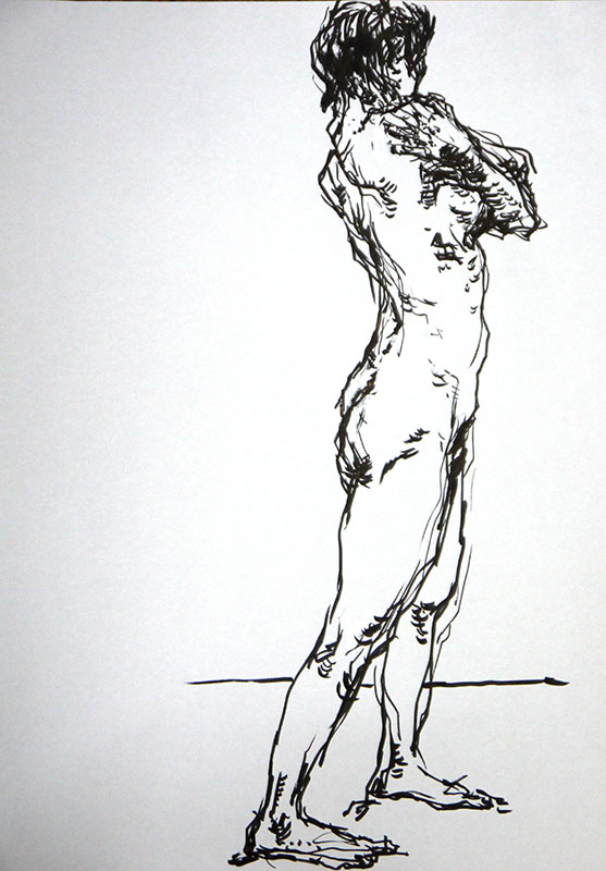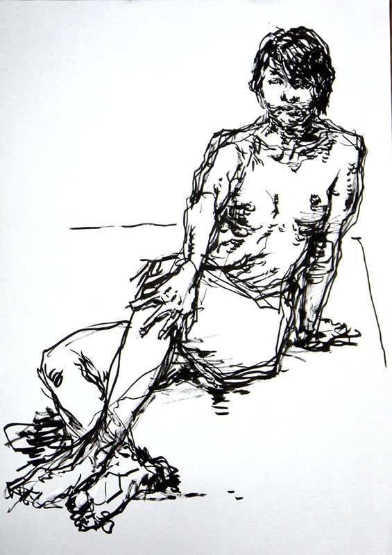 日頃慣れない形が浮かび上がり、思い通りに描けないですが、それがまた新鮮に感じます。 ●クロッキー。 暗い室内でスポットライトを使い、真横からの光で描きました。 あまり影を描かずに形を捉えようと思っていたのですが、つい塗り込んでしまいました。 ●アメリカ人男性、固定。 カーテンを少し開けた自然光。 最初は全身と暗い室内も描いていたのですが、 モデルと照明効果のあまりの格好よさに、ついのめり込みすぎたせいか 大失敗してしまい、残りの数ポーズを線主体で描きました。 やはり明暗は押さえ気味にした方が、(少なくとも今は)描きやすいようです。 ●ロシア人女性 固定 カーテンを少し開けた自然光。 太陽の光は時間とともに動くので、描きにくかったり、立体がよく理解できたり、一長一短あります。でもかなり奇麗なものですね。 外国人の顔立ちやプロポーションも描き慣れませんし 自然光もなかなかに手強いですが、これが新鮮で良い感じです。 http://www.ruchika.info ------------------------------------------------------------------------------------------