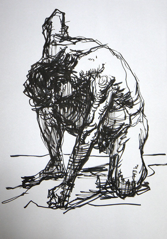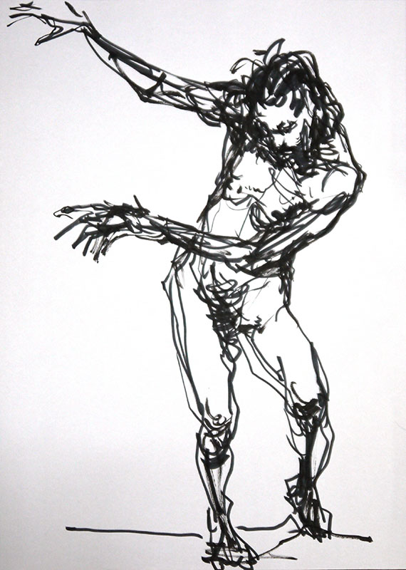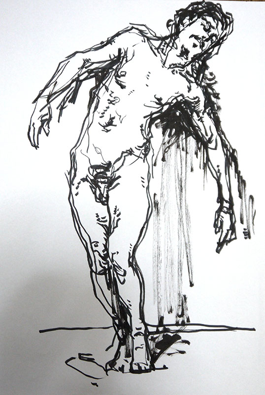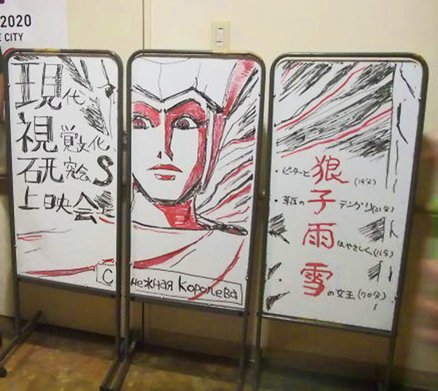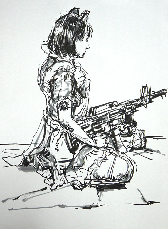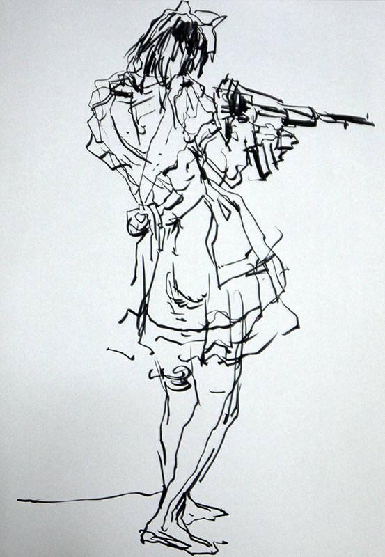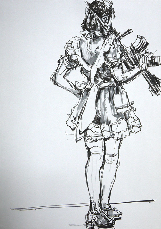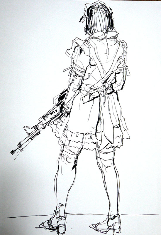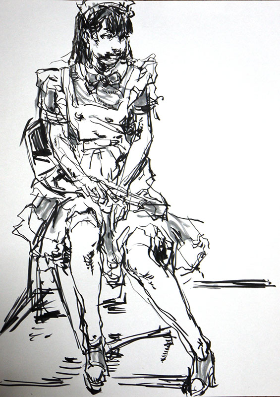 3月31日、『ACE(アニメコンテンツエキスポ)2013』の2日目に行き、スターチャイルドブースで昨年と同様でかい絵を描いてきた。 本来なら初日に描くべきだったのだが、川崎でオールナイトの歌謡イベントがあったので さすがに徹夜明けでこの仕事はできないと思い、一日ズラしてもらったのだ。 『Q』の新エヴァとか弐号機ビーストモードとかを描こうかと色々考えていたのですが、前回に続いてエヴァ初号機を描いたのは、先方からの依頼であるのです。 今回は公式サイト等での前もっての告知は一切無く、スペースの隅にこういう張り紙があっただけなのですが それでもこれを見つけてわざわざ取材に来てくれた毎日新聞の記者さんには大感謝であります。 12時頃開始とありますが、早めに着いたので11時半すぎに始めました。 今回より新兵器・アルミの棒を導入。 ホームセンターで見つけて、なんとなくいいかもと思いついたのだ。 これの先に画材をつければ、離れたところから描けて、全体の形のバランスがとりやすいかもしれないと考えたのです。 クリップ(強力洗濯バサミみたいなものです)で先端に木炭を装着。 たしかにこれは描きやすい。 高いところも大丈夫。 2本つなげて2mにしてみたが、これは使いにくかった。 形をキチンと描くためには、やはり自分の手で描かなければ。 墨入れ開始 棒の先に筆を装着。届くところも離れて描く。 お客から『おースゲー』とか声が聞こえると嬉しくなる。 「まだまだ、色が入っていないからね」と答えると『えー色つくんだ〜!』と返ってきた。 水性クレヨンで彩色。色の濃淡で立体感や重量感を出す 3歳くらいの女の子がいちばん前で観ていたので 「大丈夫?つまんなくない?」と訊くと『大丈夫』と返事をくれた。 「こわくない?」『うん』「これ、何描いているかわかる?」『エヴァンゲリオン』「そうか、偉いな」 彩色後にも墨汁で影を強調 このあたりで喉が乾いたのでポケットに入れていたフリスクを探したが、 無い。忘れてきたようだ。近くにいたスタッフの人にアメか何か持っていないかと訊くが、無いと言う。近くにいたお客がのど飴をくれた。すごく助かった。 画面右半分が未決定なまま進めていたので、考え始める 高いところも棒で便利 反射光にオレンジをいれたらいい感じになった気がする。 この辺で約2時間経過。休憩をいただく。 トイレに行って手を洗い、控え室で飲み物をもらって戻ってきた。 気がついたらヤバラ君がいた。休憩前からずっと観ていたのだという。気付かなかったなぁ。 後半、あとは全体のバランスを見ながら細部を加筆したりいろいろ。 とくに大きな進展は無いが、こういう作業は大事なのだ。 それからヤバラ君を誘ってコーヒー飲みに出かけたり。 空けた左側に弐号機を描いてみたが、やはり後付け感があるのでやめる。 煙モヤモヤを描き足す。 初号機の口から蒸気が出ているようにしたかったが、上手くいっていないみたい。 あまり細かく描き足しても効果的ではないし、むしろ絵を壊すだけなので、ここいらで終了。 開始より3時間半ほど経っていた。 最後までいてくれた新聞社の人から取材を受ける。 昨日見つけた告知が気になり、検索して調べたら、こりゃぁ是非取材しなければと休日返上で来てくれたのだそうだ。ありがたいなぁ。 記事はこちら。 http://mantan-web.jp/2013/03/31/20130331dog00m200017000c.html 今日検索したら、もうひとつ記事を見つけた。 http://neweva.blog103.fc2.com/blog-entry-2219.html こちらの人も最後までつきあってくれたのだなぁ。ありがたいやら申しわけないやら。感謝いたします。 写真は上記のリンク先とかあちこちから無断借用。 |