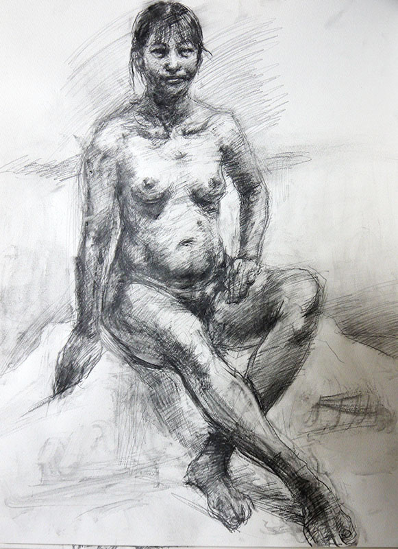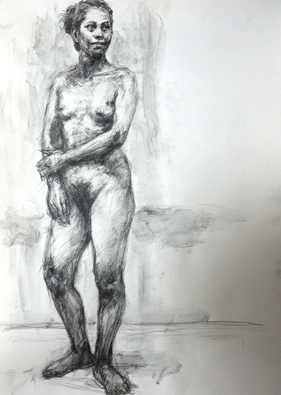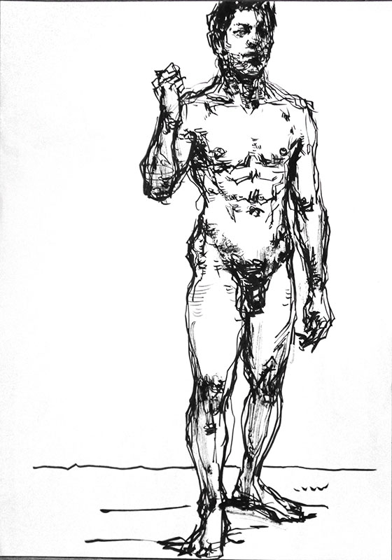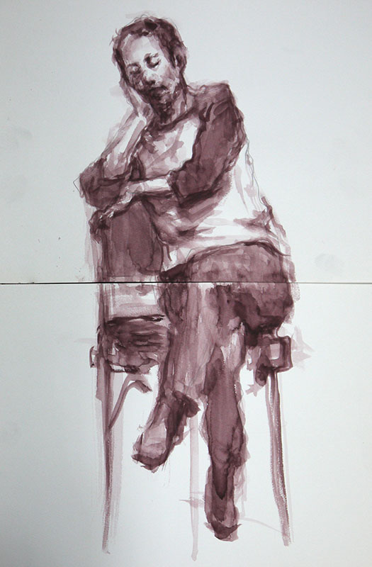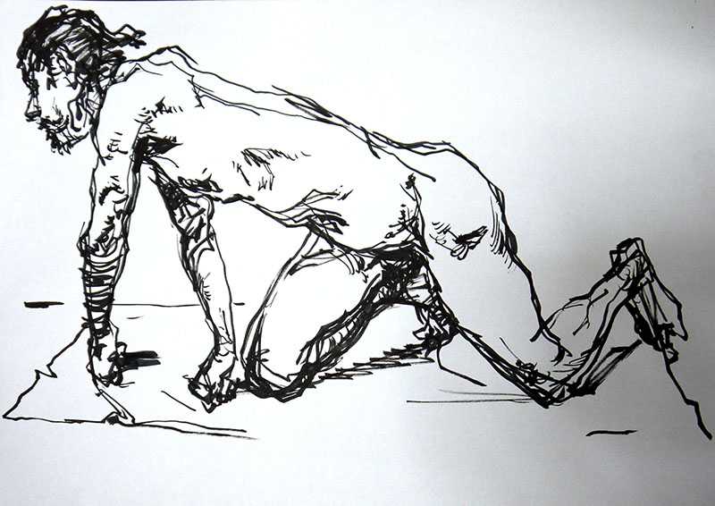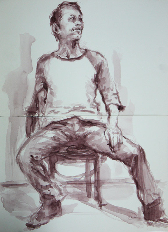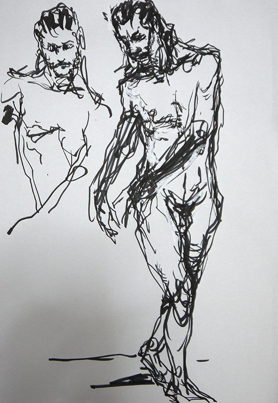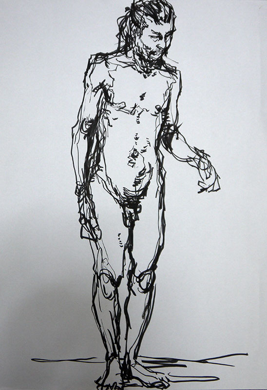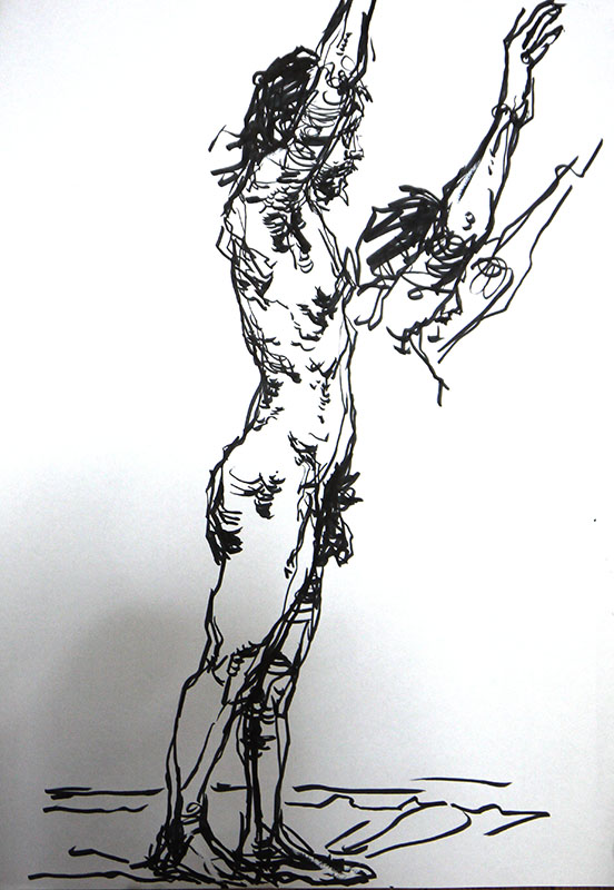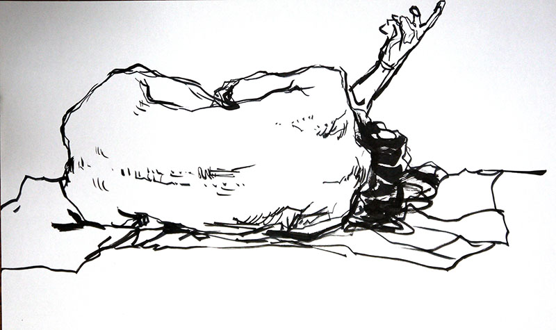 3月31日、『ACE(アニメコンテンツエキスポ)2013』の2日目に行き、スターチャイルドブースで昨年と同様でかい絵を描いてきた。 本来なら初日に描くべきだったのだが、川崎でオールナイトの歌謡イベントがあったので さすがに徹夜明けでこの仕事はできないと思い、一日ズラしてもらったのだ。 『Q』の新エヴァとか弐号機ビーストモードとかを描こうかと色々考えていたのですが、前回に続いてエヴァ初号機を描いたのは、先方からの依頼であるのです。 今回は公式サイト等での前もっての告知は一切無く、スペースの隅にこういう張り紙があっただけなのですが それでもこれを見つけてわざわざ取材に来てくれた毎日新聞の記者さんには大感謝であります。 12時頃開始とありますが、早めに着いたので11時半すぎに始めました。 今回より新兵器・アルミの棒を導入。 ホームセンターで見つけて、なんとなくいいかもと思いついたのだ。 これの先に画材をつければ、離れたところから描けて、全体の形のバランスがとりやすいかもしれないと考えたのです。 クリップ(強力洗濯バサミみたいなものです)で先端に木炭を装着。 たしかにこれは描きやすい。 高いところも大丈夫。 2本つなげて2mにしてみたが、これは使いにくかった。 形をキチンと描くためには、やはり自分の手で描かなければ。 墨入れ開始 棒の先に筆を装着。届くところも離れて描く。 お客から『おースゲー』とか声が聞こえると嬉しくなる。 「まだまだ、色が入っていないからね」と答えると『えー色つくんだ〜!』と返ってきた。 水性クレヨンで彩色。色の濃淡で立体感や重量感を出す 3歳くらいの女の子がいちばん前で観ていたので 「大丈夫?つまんなくない?」と訊くと『大丈夫』と返事をくれた。 「こわくない?」『うん』「これ、何描いているかわかる?」『エヴァンゲリオン』「そうか、偉いな」 彩色後にも墨汁で影を強調 このあたりで喉が乾いたのでポケットに入れていたフリスクを探したが、 無い。忘れてきたようだ。近くにいたスタッフの人にアメか何か持っていないかと訊くが、無いと言う。近くにいたお客がのど飴をくれた。すごく助かった。 画面右半分が未決定なまま進めていたので、考え始める 高いところも棒で便利 反射光にオレンジをいれたらいい感じになった気がする。 この辺で約2時間経過。休憩をいただく。 トイレに行って手を洗い、控え室で飲み物をもらって戻ってきた。 気がついたらヤバラ君がいた。休憩前からずっと観ていたのだという。気付かなかったなぁ。 後半、あとは全体のバランスを見ながら細部を加筆したりいろいろ。 とくに大きな進展は無いが、こういう作業は大事なのだ。 それからヤバラ君を誘ってコーヒー飲みに出かけたり。 空けた左側に弐号機を描いてみたが、やはり後付け感があるのでやめる。 煙モヤモヤを描き足す。 初号機の口から蒸気が出ているようにしたかったが、上手くいっていないみたい。 あまり細かく描き足しても効果的ではないし、むしろ絵を壊すだけなので、ここいらで終了。 開始より3時間半ほど経っていた。 最後までいてくれた新聞社の人から取材を受ける。 昨日見つけた告知が気になり、検索して調べたら、こりゃぁ是非取材しなければと休日返上で来てくれたのだそうだ。ありがたいなぁ。 記事はこちら。 http://mantan-web.jp/2013/03/31/20130331dog00m200017000c.html 今日検索したら、もうひとつ記事を見つけた。 http://neweva.blog103.fc2.com/blog-entry-2219.html こちらの人も最後までつきあってくれたのだなぁ。ありがたいやら申しわけないやら。感謝いたします。 写真は上記のリンク先とかあちこちから無断借用。 |