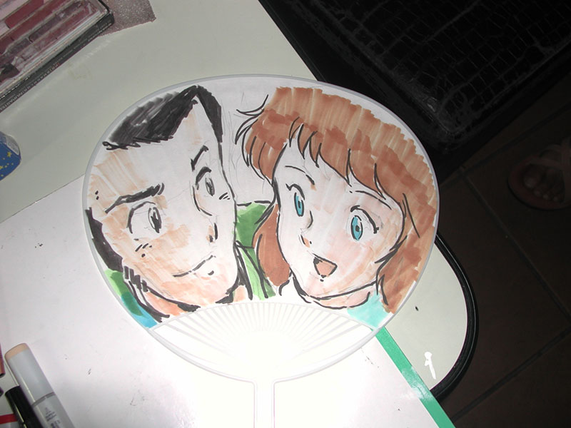 団扇が切れたので、そのへんにあった紙に描いた物もあります。