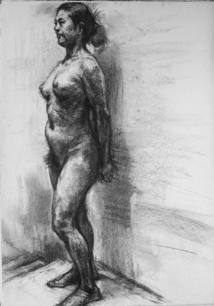 木炭はどうも苦手です。軽くこするだけで消えるような固着の弱い奴らはどうも安心して描けないのです。鉛筆もパステルも、あいつら裏切りそうでいまいち信用できない。